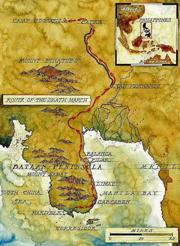 Bataan Death March Map : For The Next Seven Days, The Men Were Forced To Walk 65 Miles In Tropical Temperatures Over 100 Degrees, Given No Food.